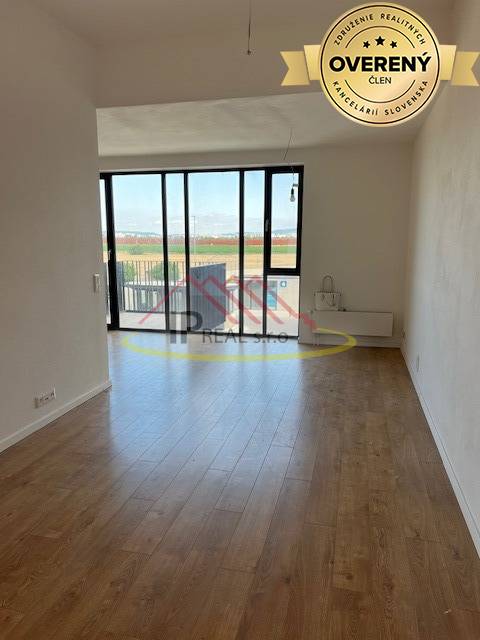 Priečka na oddelenie spálne od obývačky s kuchyňou s posuvnými dverami bude dorobená v cene podľa želania kupujúceho.