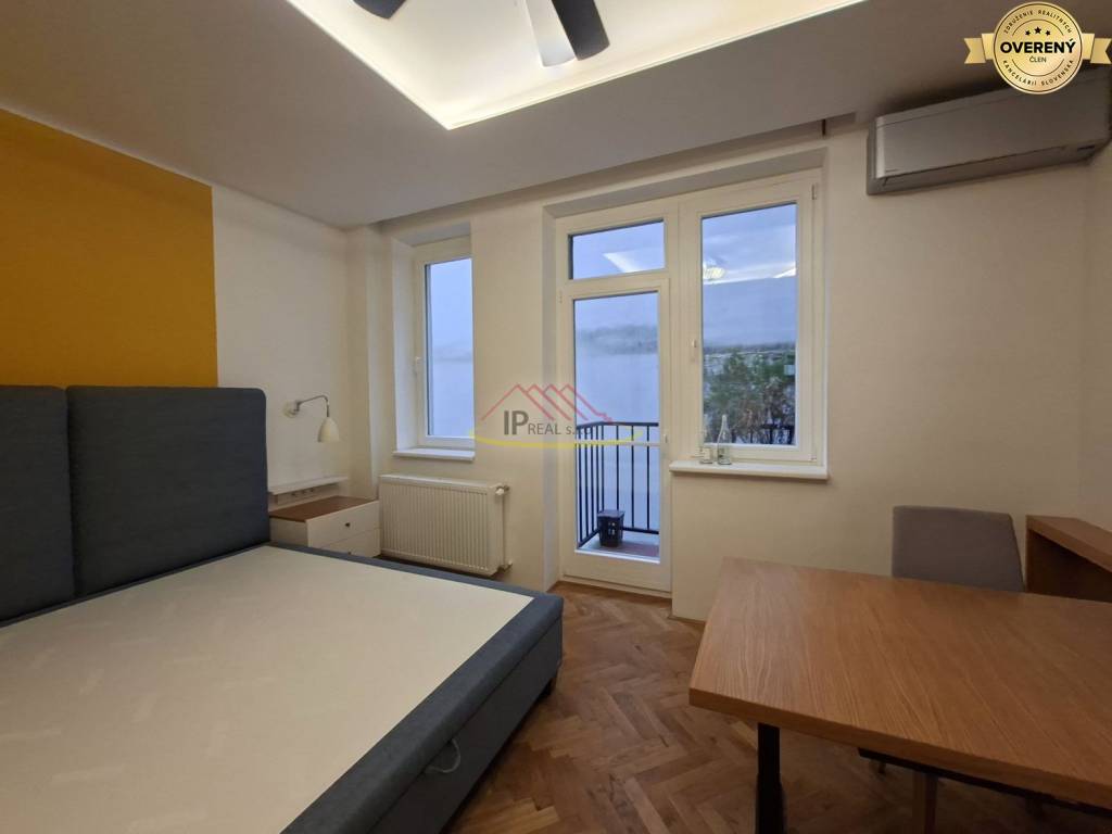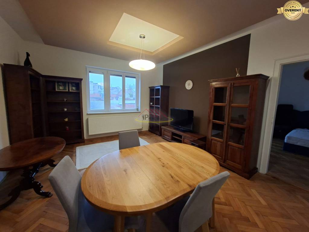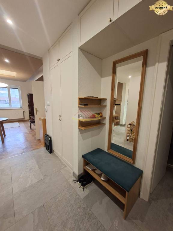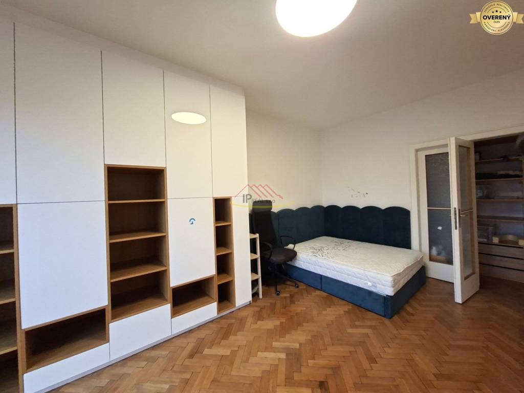Vchodovými dverami sa vstupuje sa do otvoreného priestoru, ktoré dvorí chodba, kuchyňa, jedáleň a obývačka. Okrem obývačky sú v byte samostatné, priestranné izby, obe s úložnými priestorom. V byte je aj samostatný šatník . Kúpeľňa je vybavená vaňou, sprchovým kútom, umývadlom, práčkou a sušičkou. V oboch izbách sú umiestené dvojlôžka, v hlavnej spálni je aj veľký, pracovný stôl. Nakoľko v byte sú dve klimatizačné jednotky, počas letných dní sa nemusíte obávať nepríjemných horúčav . V prípade potreby majiteľ je ochotný podľa dohody nábytok doplniť. Na poschodí sú 3 byty. Bytový dom je tichý so slušnými susedmi. Byt je vhodný pre pár, rodinu či kolegov, ktorí budú každý užívať veľkú izbu a zdieľať kuchyňu, obývačku a ostatné príslušenstvo. V byte je francúzsky balkón. Voľný dlhodobo ihneď.