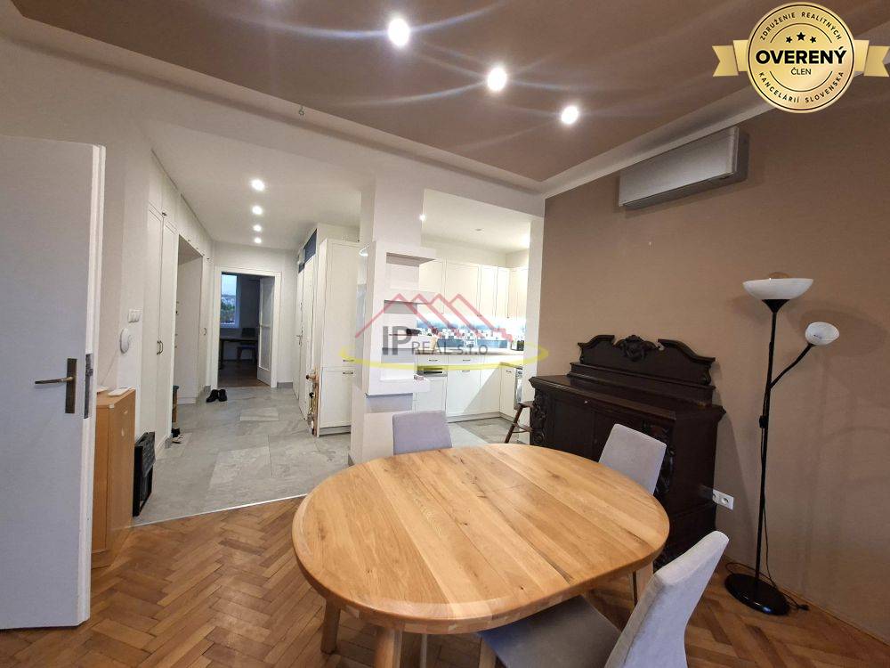 Prenajmeme kompletne prerobený, priestranný 3i byt, ( výmera bytu je 85m2 ) nachádzajúci sa pri Hviezdoslavovom námestí , na Strakovej ulici. Byt je situovaný na 4 podlaží s výťahom. Je orientovaný na 2 strany, pričom obývačka spojená s kuchyňou a detská izba sú otočené do Strakovej s pôsobivým výhľadom na kostol Sv. Martina a bratislavský hrad, spálňa je do tichého dvora. Byt je kompletne zariadený - kuchynská linka vybavená spotrebičmi ( vrátane umývačky riadu , TV ), samostatný šatník, kúpeľňa so sprchovacím kútom aj s vaňou, práčka, sušička, samostatné WC. Byt prešiel celkovou rekonštrukciou, má nové obklady, podlahy, dlažby, stierky, centrálne kúrenie.