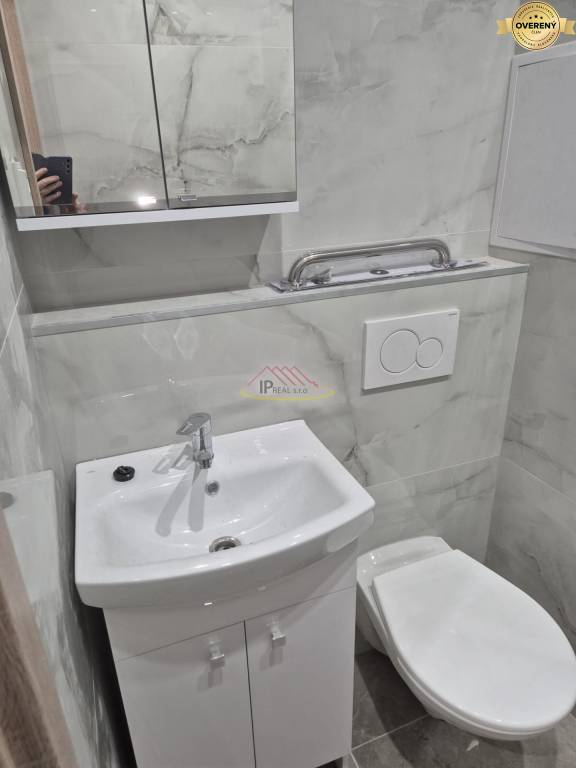 Byt má malú chodbičku, z ktorej sa vchádza do izby, ktorej súčasťou je kuchynská linka ( chladnička s mrazničkou, práčka, dvojplatnička ) a tiež sociálneho zariadenia. Prešla kompletnou rekonštrukciou, kúpeľňa je spojená s WC a je v nej sprchovací kút.
